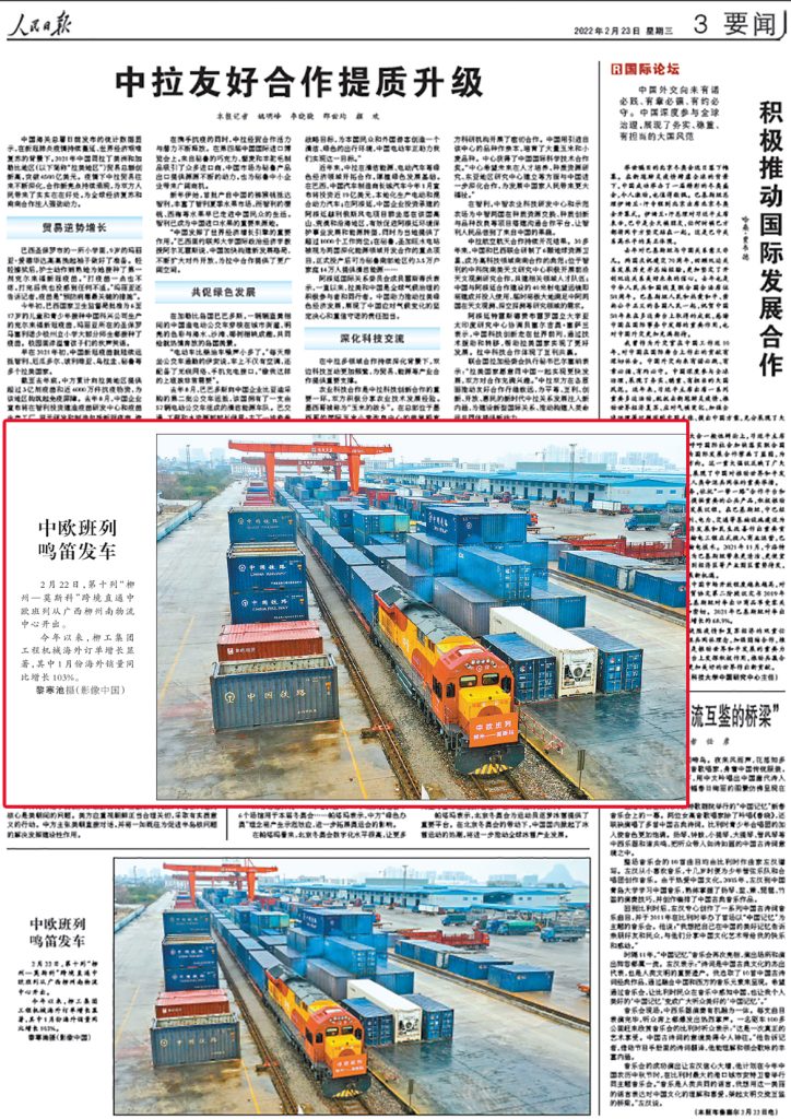 2月23日,《人民日報》要聞版刊發(fā)圖片新聞,關(guān)注2022年柳工海外訂單增長情況。