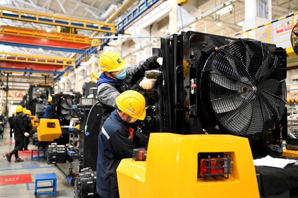 在柳工裝載機(jī)、挖掘機(jī)生產(chǎn)一線,機(jī)器轟鳴,熱火朝天,工人們?yōu)闈M足市場訂單需求大干快上,海外產(chǎn)品產(chǎn)銷兩旺,持續(xù)保持良好態(tài)勢。