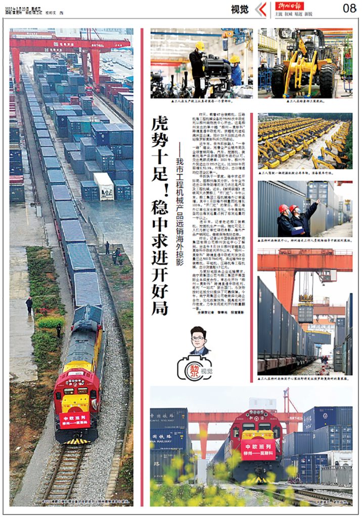 《柳州日報》整版聚焦柳工產(chǎn)品遠(yuǎn)銷海外掠影。今年以來,柳工海外訂單增長顯著,其中1月份海外銷量同比增長103%。“開門紅”的背后,柳工海外訂單也發(fā)生了新變化,高端機(jī)型的出海發(fā)運量占到了總發(fā)運量的一半。