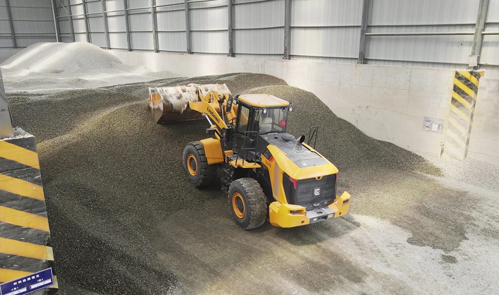 投入運(yùn)行的柳工856H裝載機(jī),整車全長雖然有8.3米左右,“但操作起來轉(zhuǎn)向非常靈活,擺動(dòng)角度足夠大,這讓我們在場地堆滿骨料時(shí),也能夠來去自如。”駕駛856H數(shù)年的操作手如是評(píng)價(jià)道。
