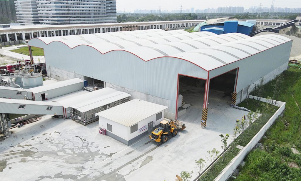和傳統(tǒng)的拌合料生產(chǎn)工廠不同,這里別有洞天。沒有揚(yáng)塵,污水、廢料都從隱秘的管線中直接處理后排放,“綠色”成為這個(gè)攪拌站最大的特色。